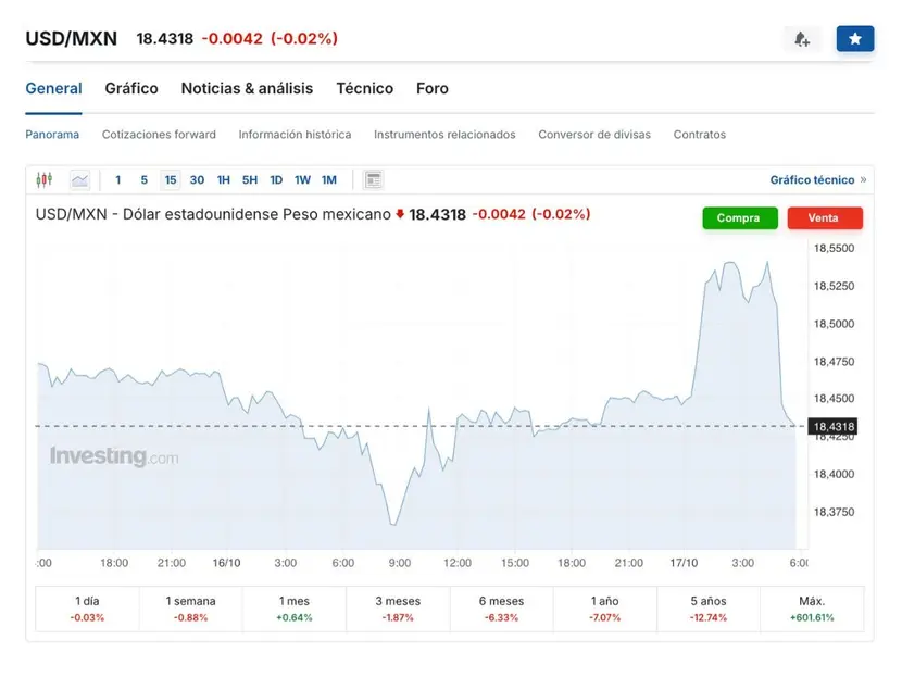 Dólar se mantiene estable este 17 de octubre: cotiza en 18.43 pesos mientras la Fed evalúa nuevos recortes
